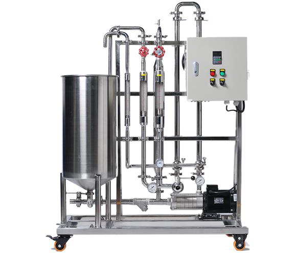 本设备可分别适用无机陶瓷膜和有机管式膜过集成装置,主要用于超滤和微滤级别的过滤。可广泛地应用于中药植提浸提液的过滤除杂、发酵液除菌体过滤、高悬浮物含量流体的过滤澄清、金属纳米粉体的浓缩、污水处理等流体分离领域。