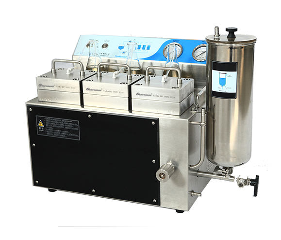 1、三个膜组件串联设计,可三组件同时使用,也可任意使用一个或者二个组件;三个组件可以使用相同膜片过滤,也可以使用不同的膜片过滤;极大方便了测试和研究(三组件前后压力差不超过0.1Mpa)。