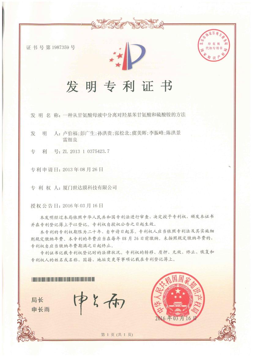 一种从甘氨酸母液中分离对羟基苯氨酸和硫酸铵的方法