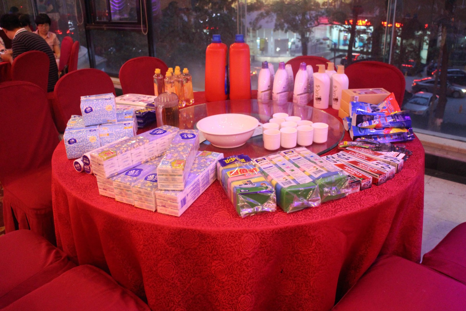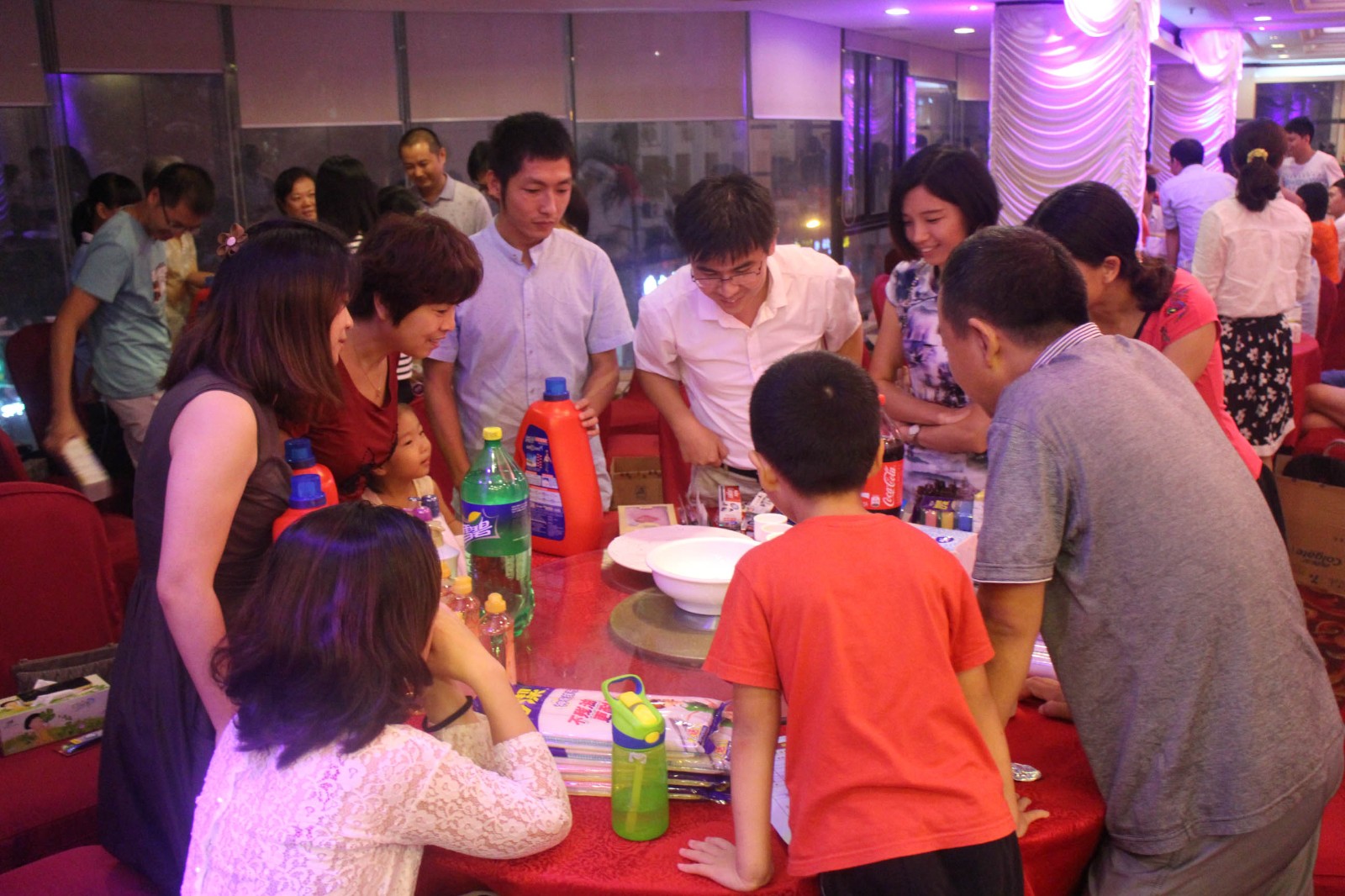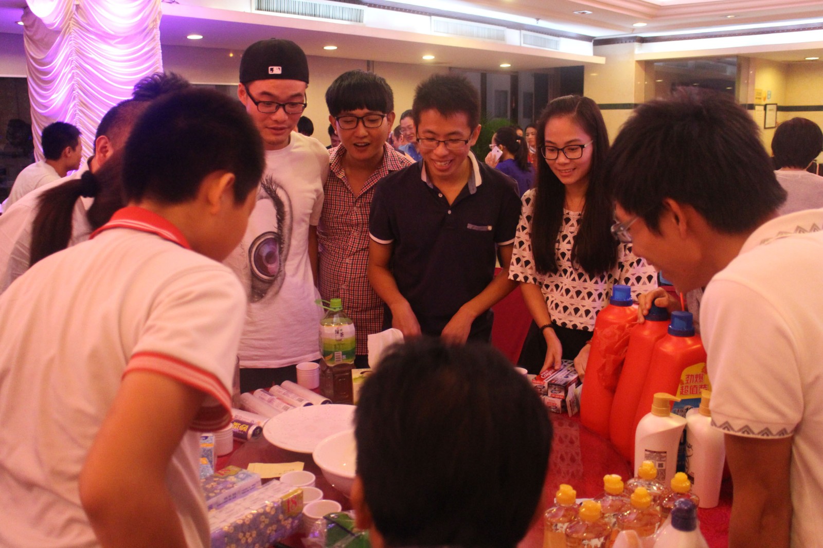 晚宴开始之前,大家聚齐,开始期待已久的博饼活动。每十个人围成一桌,依次掷骰子,直到桌上的奖品全部分完为止,全场骰子声、欢笑声连连,热闹非凡,场内成了一片欢腾的海洋。此次博饼活动,世达膜为大家准备了洗发水、洗衣液、洗洁精、纸巾、毛巾各类日常生活用品及购物卡等奖品,不仅让员工及家属感受到节日的团聚快乐,而且也是给员工的节日福利,让大家 “满载而归”。一个小时过去了,在一片片欢呼声中,每桌状元诞生,博饼的气氛达到了高潮,状元们上台角逐最后的王中王大奖,几轮下来,最后王中王归门卫康伯所属。