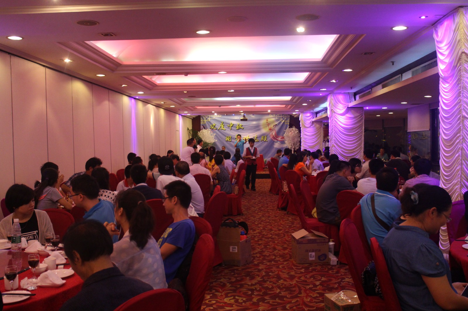 博饼结束,在李总的致辞中,晚宴正式拉开序幕。各色的菜肴、美酒、家人融成了一幅幅美丽的喜庆画面。大家互相敬酒、互道安好。