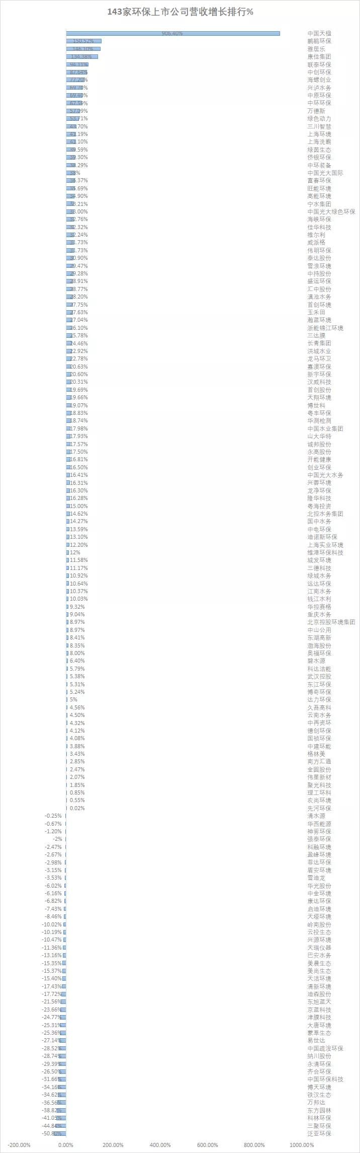 中国天楹营收实现增长906%,位居营收增速榜首(企业相关阅读:全产业链+全球化:海内外捷报频传,中国天楹打通生活垃圾收处产业链)。