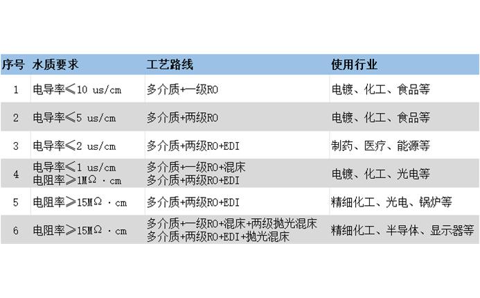 水处理能力:反渗透装置水的出水率应≥75%,脱盐率应≥97% 出水水质: 总硬度:≈0μmol/L,二氧化硅:<0.02mg/L,电导率:<0.2μs/cm,PH值:8.8~9.2,产水水质应达到《火力发电机组及蒸汽动力设备水汽质量》GB/T 12145—2016的要求; 水处理主工艺:多介质过滤器+活性炭过滤器+2级反渗透+EDI装置,设2套反渗透装置和EDI,每套装置都能单独运行,也可以并联同时运行。